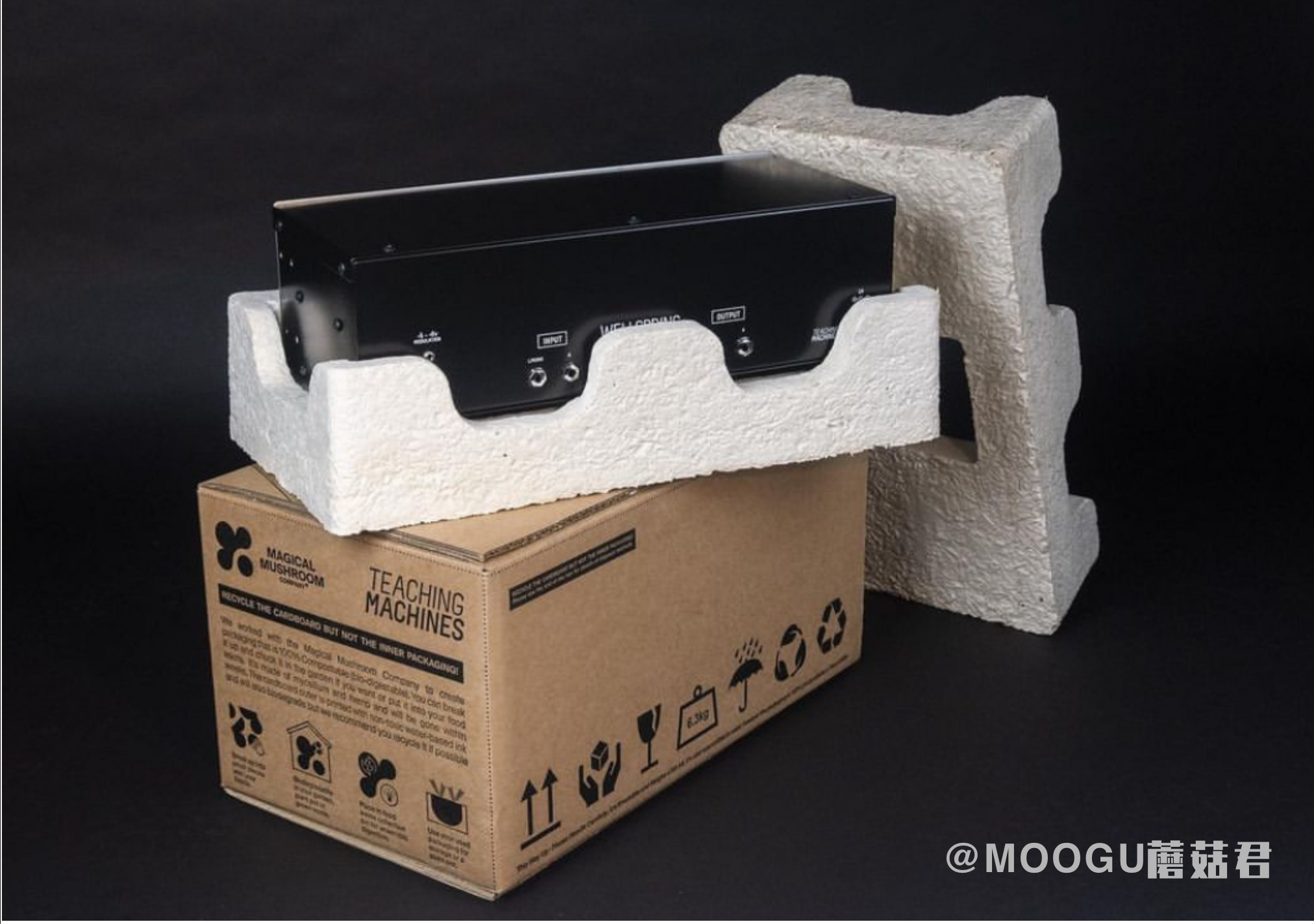 菌丝体可持续环保材料产品的问世主要用于替代不可降解的发泡塑料,应用于产品的包装缓冲材料,可标准化、可定制化大批量生产,解决常规缓冲包装材料废弃物带来的污染和回收问题。
